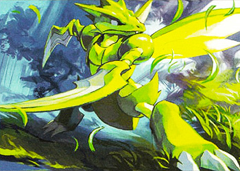 It tears and shreds prey with its wickedly sharp scythes. It very rarely spreads its wings to fly.